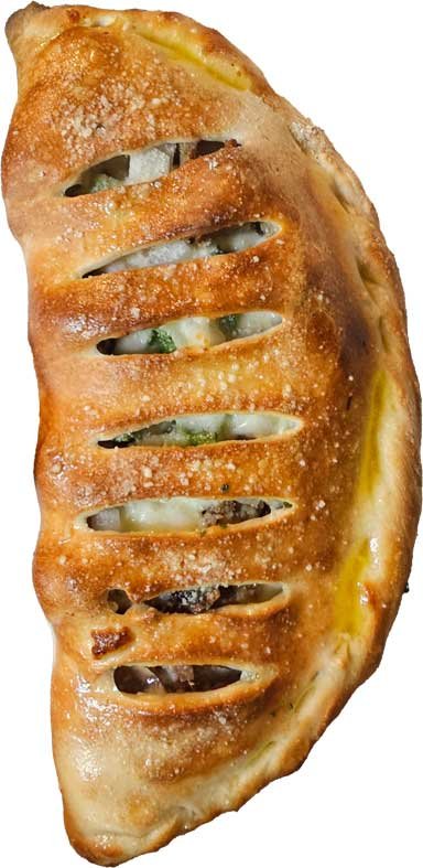 We start by rolling out our fresh pizza dough, made daily for the perfect balance of crispness and chew. Inside, we layer an irresistible combination of Italian meats — pepperoni, ham, bacon, sausage, and sliced meatballs — each one bringing its own rich, savory flavor. Together, they create a perfectly seasoned, meaty filling that makes this calzone a true feast. To complement the bold flavors of the meats, we add a generous amount of ricotta cheese, giving the filling a smooth, creamy texture that melts beautifully as it bakes. Then, we add mozzarella cheese, which brings that classic, gooey stretch and mild flavor that ties everything together perfectly.