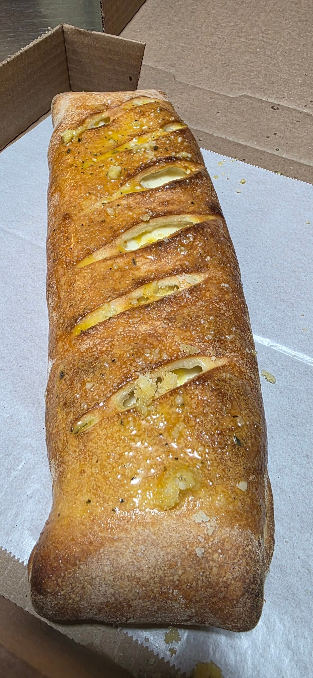 Of course, no Stromboli would be complete without plenty of mozzarella cheese, melted into a smooth, creamy layer that holds all the ingredients together. As the Stromboli bakes in our hot ovens, the dough turns golden brown and slightly crisp on the outside while remaining soft and fluffy inside — perfectly encasing the melted cheese and flavorful filling. The result is a beautifully balanced dish where every ingredient complements the next, creating a warm, gooey, and satisfying experience with every bite.